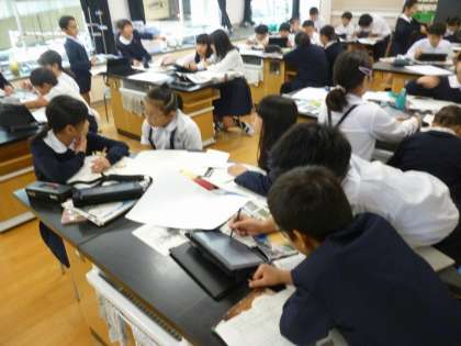 最近の台風による被害のこともあり、みんな真剣に調べていました。