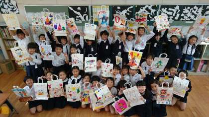 キャンドルナイト実行委員の方と毎日新聞社の記者の方も取材に訪れ、少し緊張気味の子どもたちでしたが、素敵な行灯ペーパーバッグが完成しました☆
