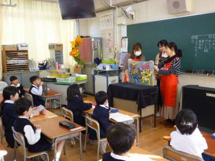 月の終わりの金曜日の朝は、読み聞かせボランティアの方々による、えほんの読み聞かせの時間です。