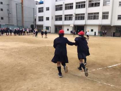 今日のみんな遊びは運動委員の6年生を中心に手つなぎ鬼をしました。