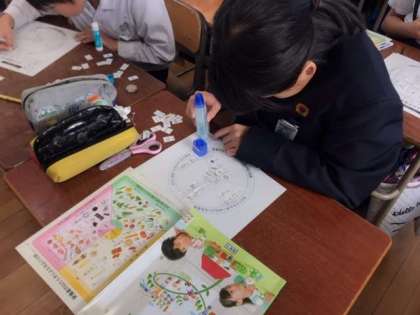 どの食品がどの栄養素を多く含んでいるのか教科書を調べながら学習していきました。しっかり栄養バランスに気をつけて食事をしていくことの大切さに気がつく事ができました。