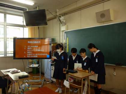 今日、自分たちが思う町づくりについて、パワーポイントを使ってプレゼンテーションを行いました。