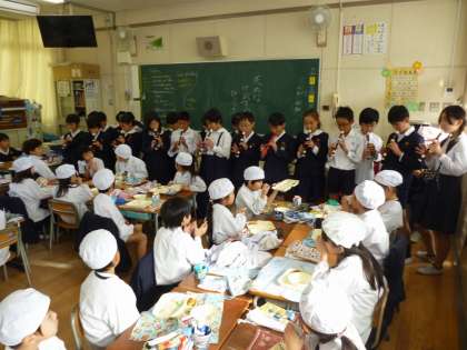 4年生の楽しい演奏で最後の給食がより楽しくなりました。