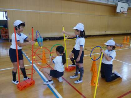 友だちと相談しながら、いろんなアイデアを生かして、楽しく体を動かせるようなアスレチックコースができました。