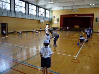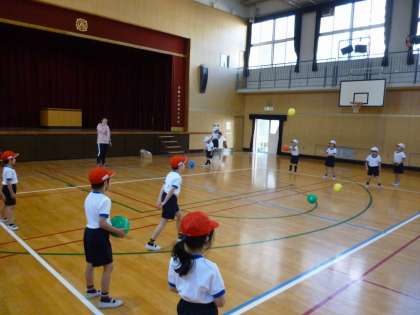 ボールを使っての運動をしました。