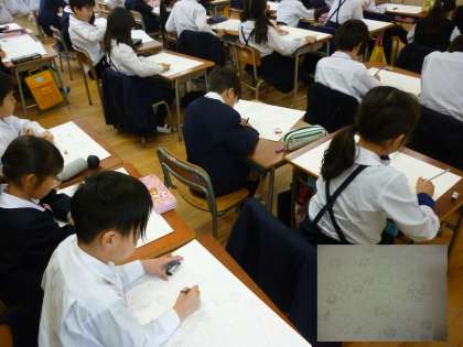 楽しそうな顔をしながら線をかいたり、枠をかいたりしています。