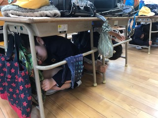 今日も地震が発生したらどうするかを確認しながら訓練を行いました。