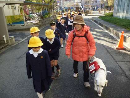 目が不自由な中、「やればできる」という思いでいろいろなことに挑戦しておられる様子をお聞きしたり、盲導犬の働きのデモンストレーションを見せていただいたりしました。