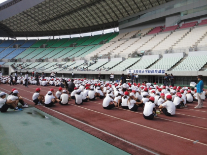 長居陸上競技場で北区の6年生が集まり、北区スポーツ交歓会が行われました。