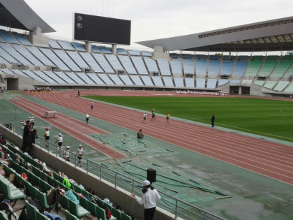 メインスタジアムの芝生の緑の鮮やかさに感嘆の声があがりました。午前中は、100メートル個人走と100x4メートルリレーをします。