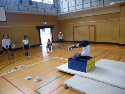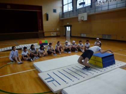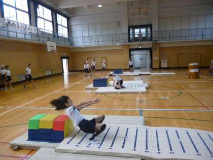 今日は感覚をつかむためにマットをたくさん敷いての練習しました。みんな一生懸命頑張って取り組んでいました。