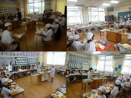いつもと違う給食時間の雰囲気に子どもたちは楽しそうにしていました。牛乳の片付けも仲良く行っていました。