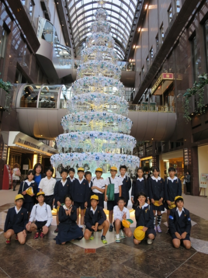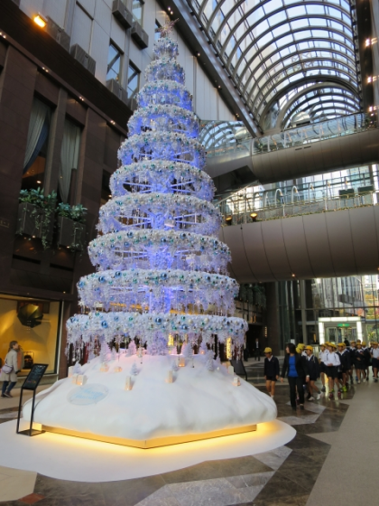 帰りに,ホテル阪急インターナショナルに早くも設置されたクリスマスツリーがあり,見学してから帰校しました。