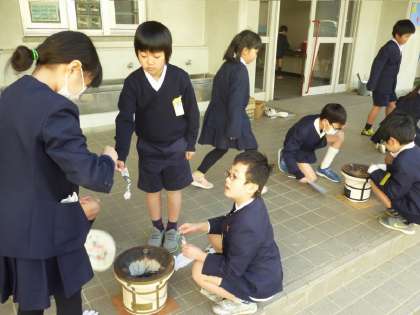 火付けるのに、とても苦労しました。なかなか炭に火が着きませんでしたが、子どもたちは必死にうちわで風を送りなんとか火をつけることができました。