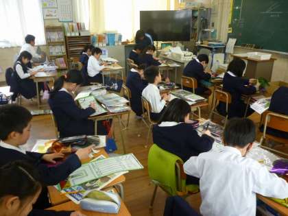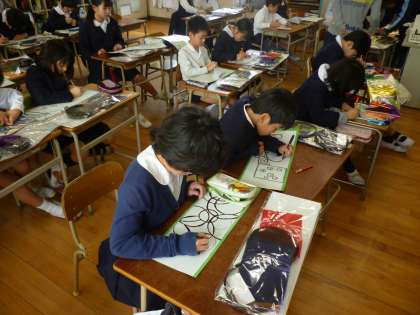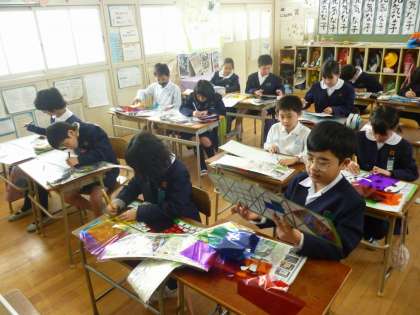 一人一人自分の思い描いた絵を下書きしたり、切りぬいたりしています。