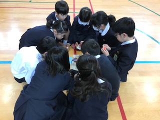 今日の全校集会は27日に行われる「ありがとうを伝える会」で6年生に渡すプレゼント作りをしました。5年生を中心に協力して活動していました。