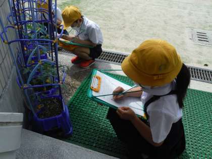 前半では、ミニトマトの観察をしました。