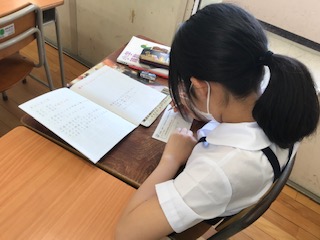 先週午前中に登校した子どもたちが今週は午後組になります。算数科「対称な図形」の学習を暑さに負けず頑張っています。