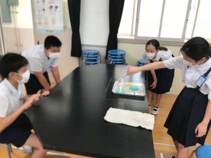 今日の理科では空気と燃え方の関係を調べる実験をしました。