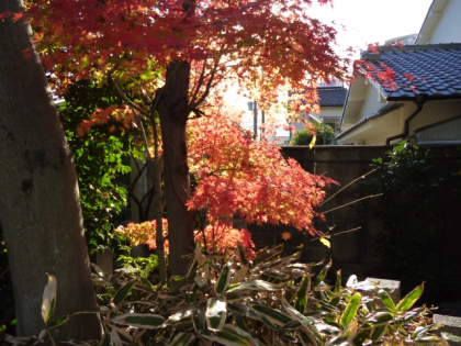清々しい青空のもと,豊崎神社へ出かけ,境内に植わっているイチョウやサクラなどの落ち葉を観察し,拾ってきました。