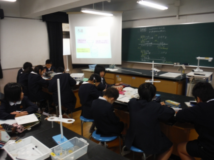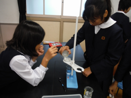 PowerPointでつくった資料で再確認し,ろ過の手順も学んでから,食塩とミョウバンをろ過して,透明な液と沈殿している粒(結晶)とにわけました。