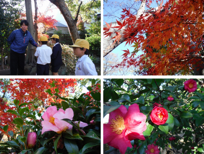 黄色や赤,中には紫色の葉もありました。燃えるように真っ赤な紅葉や,きれいに咲いていたサザンカもありました。