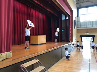 密にならないようなゲームを考えるのは大変ですが、楽しい集会の時間が過ごせるように委員会の子どもたちが頑張っています。