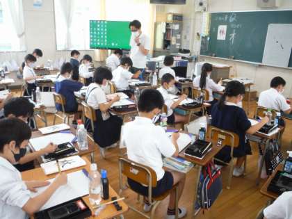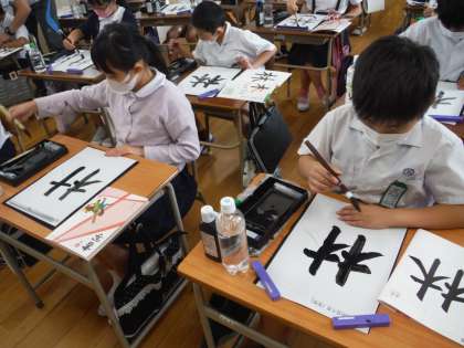 今日の習字は、漢字の左右の部分の組み立て方を学びました。