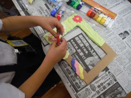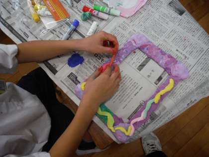軽量紙粘土に絵の具をまぜて、何やら楽しそうに活動しています。