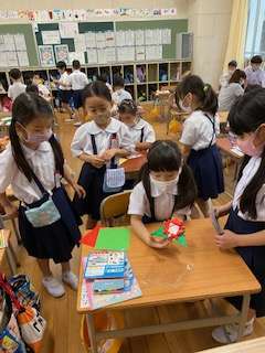 おりがみが得意な子は、お友だちに折り方を教えてあげながら一緒に折っていました。