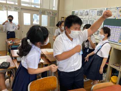 そしてグループに分かれて喜びなどの感情を友だちの体を使って表現してみました。