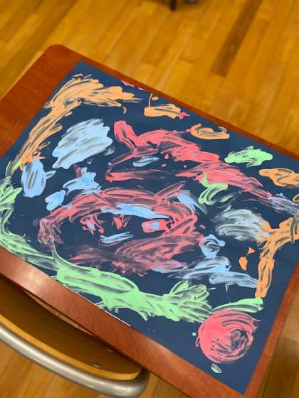 水曜日に、液体粘土に絵具を混ぜたものを使って、手や指で絵を描きました。