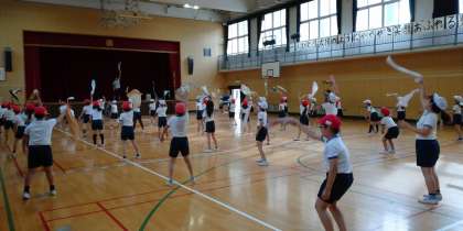 練習開始から2日目とは思えないほど、動きを覚えてかっこよく踊る3・4年生。