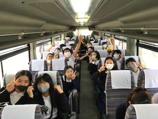 1回目の休憩を終えて、再びバスは出発しました。まだまだ全員元気です。