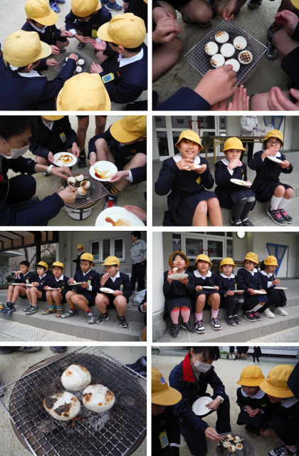 香ばしいかおりに包まれた炭火で焼いたお餅に,子どもたちは大満足でした。