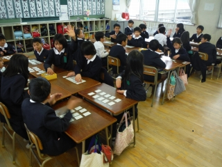 教科書ではすでに学習済みだが,こんなにたくさんのひらがなの取り札があるととまどってしまう。