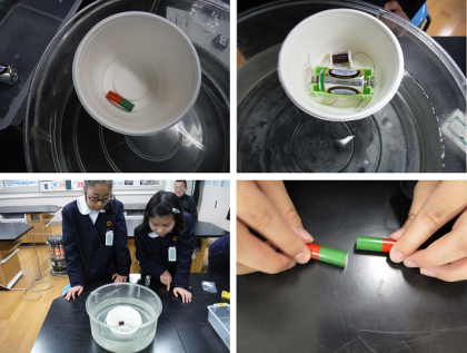 ○電流の向きを逆にすると,電磁石の極も逆になること。