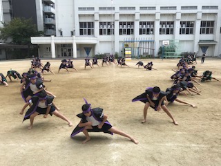 本番通りに法被を着用して練習を行いました。自分のベストが出せるように最後の仕上げをしましょうね。
