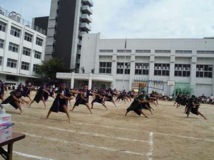 5・6年生『豊崎ソーラン』では、体を大きく使っての動きに加え、全員の揃った動きに圧倒されました。