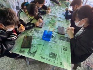板のすすを落とし、タオルで磨いたら、次は絵を描いていきます。