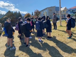閉舎式を行い、ハチ高原から豊崎小学校に向かって出発しました。