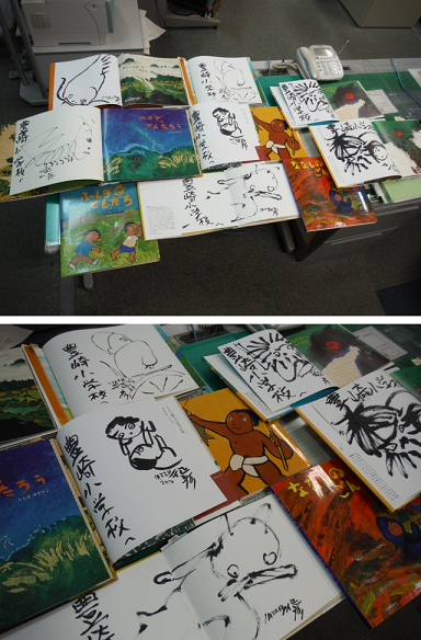 田島先生から,その絵本にあった直筆のサインを本校に寄贈していただきました。ありがとうございます。