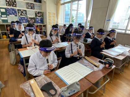 6年生はリコーダーでカノンの演奏をしています。途中からリズムがとても速くなり、かなり難しい曲ですが、美しい音色で演奏しています。