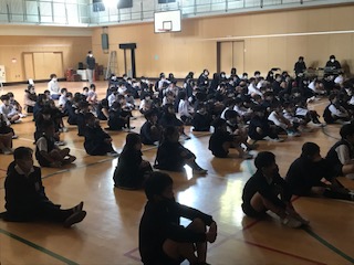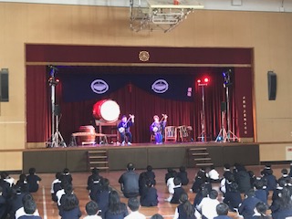 今年度の芸術鑑賞会は、「和楽器演奏集団 独楽」の皆さんをお迎えして実施しました。和太鼓や琴、三味線など、日頃あまり演奏を聞く機会がない楽器の音色に子どもたちは手拍子や体を動かすなどして楽しんでいました。独楽の皆さんステキな演奏をありがとうございました。