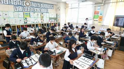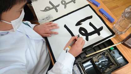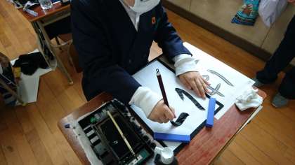 国語科、毛筆習字の学習の様子です。