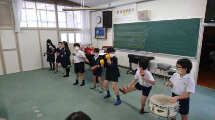 即興での発表会も行いましたが、躍りながら楽器を演奏する児童もでてきて、とても楽しい一時間となりました!
