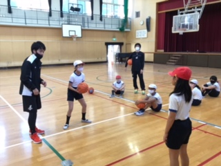 今年度のトップアスリート授業は、プロバスケットボールチームの大阪エヴェッサのコーチの方々をゲストティーチャーにお迎えして実施しました。バスケットにおける基本動作を分かりやすく教えていただきました。楽しい雰囲気で指導していただけたので笑顔いっぱいの時間となりました。大阪エヴェッサの皆様、ありがとうございました。