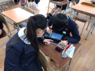 今までコンパスや定規を用いて作図していたものを、タブレットのプログラミング機能を利用して行いました。慣れてくるとスイスイできますね。