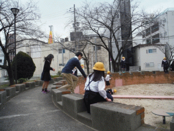 休み時間を取らなかったので,豊崎北公園でちょっぴり休憩タイム。ブランコで遊んだり,けいどろやおにごっこをしたり…。図鑑を手に緑色のキノコを発見した子どもも。それぞれ楽しい時間を過ごしました。
