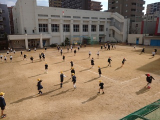 昨日・今日と、ほとんどの学年運動場でドッジボールや鬼ごっこ等をして楽しんでいました。